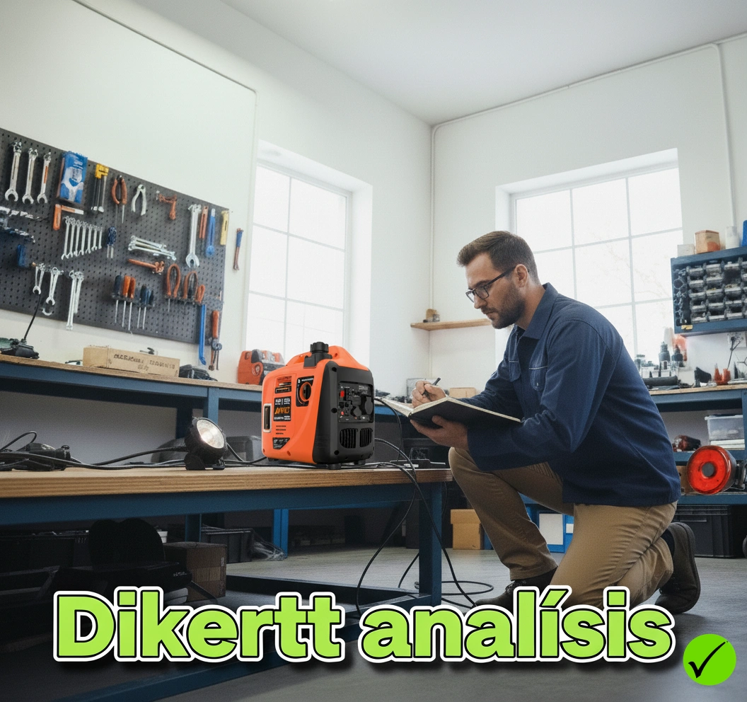 Qué: verificación de potencia continua y pico, calidad de onda, ruido, consumo y autonomía. Cómo: cargas resistivas escalonadas, arranque de cargas inductivas ligeras, osciloscopio para THD y forma de onda, sonómetro a 7 m, caudalímetro o repostajes medidos para consumo. Dónde: exterior controlado, 23–27 ºC, sin viento fuerte. Herramientas: pinza True‑RMS, vatímetro, osciloscopio, sonómetro Clase 2, cronómetro, bidones graduados. Versión: sin firmware; lote comercial con panel 230V, 12V y USB. Fecha de test: 30/08/2025.