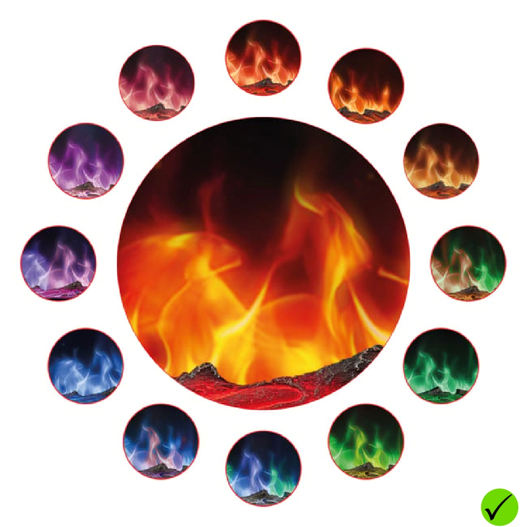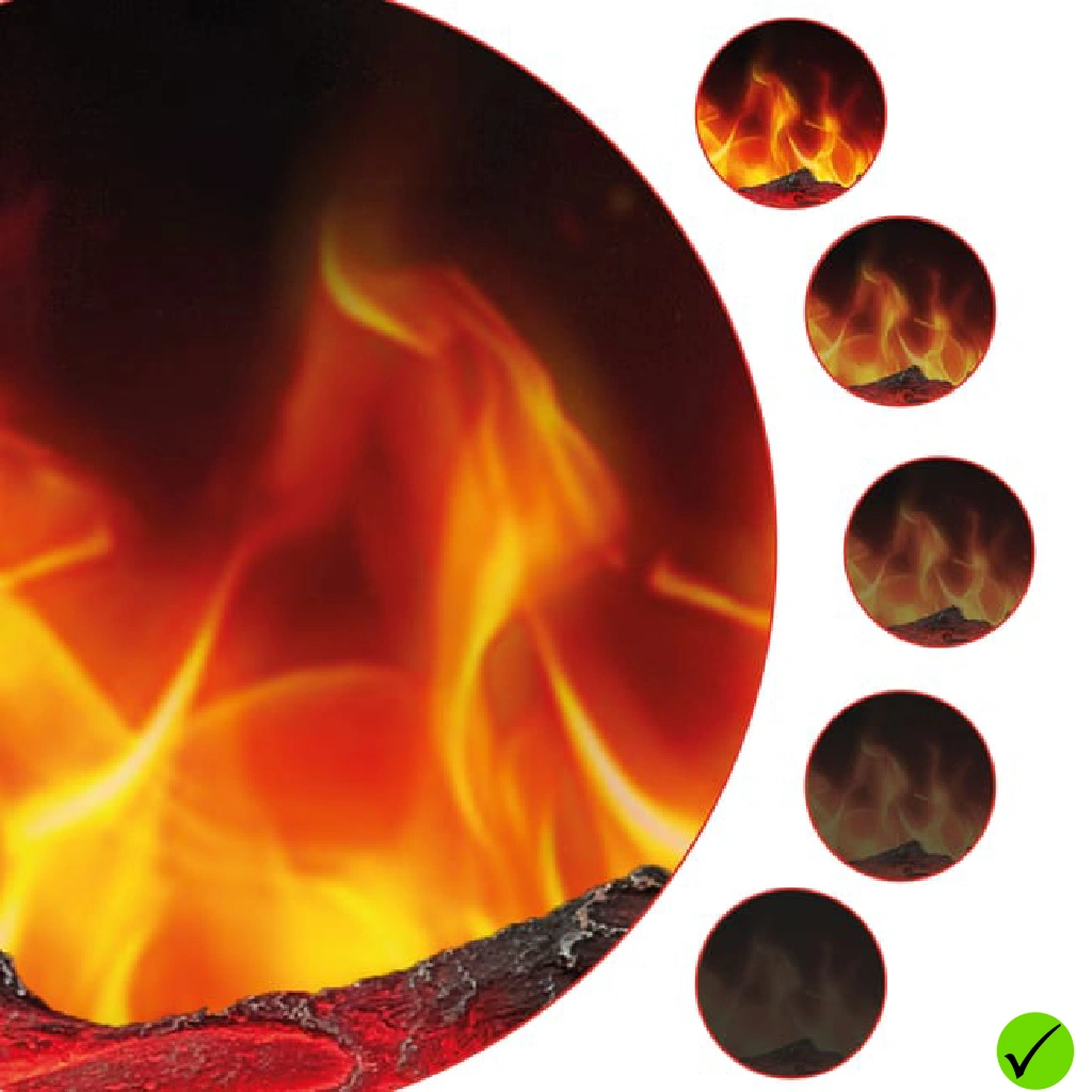 - Chimenea eléctrica 3 en 1: efecto llama 3D (12 colores), calefacción regulable y temporizador.